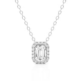 Emerald Cut Moissanite Halo Necklace | Silver & Gold Options