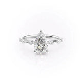 The Petite Pear Cut Moissanite Engagement Ring with Hidden Halo is designed for those who appreciate understated elegance. Its graceful pear-shaped center stone is subtly elevated by a hidden halo, adding brilliance without overwhelming the minimalist profile.