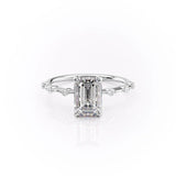 The Petite Emerald Cut Moissanite Engagement Ring is a celebration of minimalist beauty. Its clean emerald cut center stone exudes sophistication, while the discreet hidden halo adds a luminous surprise beneath the surface.