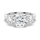 This 2 CT Classic Three-Stone Moissanite Engagement Ring is a timeless celebration of your journey together. Featuring a brilliant round-cut center stone flanked by two dazzling moissanites, this design symbolizes enduring love and shared memories.