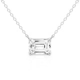 Embrace sleek sophistication with this solitaire emerald cut moissanite necklace—a modern classic that radiates elegance. The step-cut facets of the emerald shape offer a clean, refined look while maintaining the dazzling brilliance moissanite is known for.